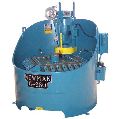 The Newman G-280 Rotary Knife Grinder is recommended for precision grinding of chipper, planer and other specialty knives that require making a straight pass across the face of the knife. The unique design of these grinders provides a rotating disc with four adjustable bars for grinding bevels from 25 to 40 degrees. It is also equipped with inside bars for grinding planer knives on a fixed 30 degree bevel. Various knife stacking features are available.
