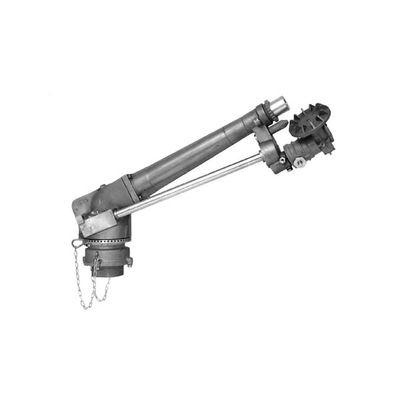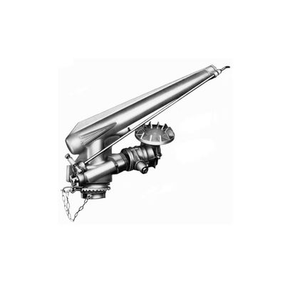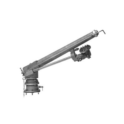 Advanced system which does not reduce the range even with high swing speeds. Adjustable swing speed. Flange connector. No. 6 M10 studs on diameter 145 mm. Turbine sprinklers for self-propelled machine installation. Trajectory: 25 degrees. Opportunity for fast positioning. Perfect functioning on steep terrain. No vibrations or rebounds which cause displacement of skids or carts. Intermittent jet-disturber.