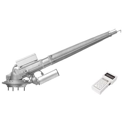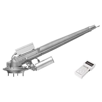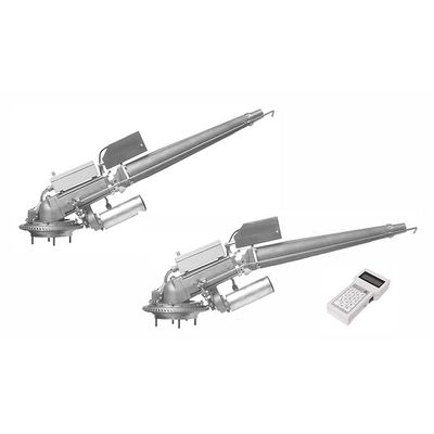 It is an irrigator with variable angle trajectories. The regulation can be completed with a minimum of 18 to a maximum of 26 degrees. The initial angle, set up with programming, is at 25 degrees. Inclination can be set manually or automatically by means of the built-in wind sensor. The electromechanical series works with programmable electronic management and is controlled by means of a multi-function remote control. It is possible to set up the irrigation angle with the multifunction remote control clockwise and counterclockwise; you can also regulate the rotational speed that is no longer dependent on the working pressure and can be changed independently for each rotation direction.