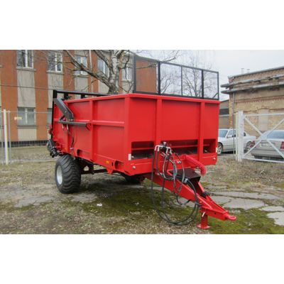 Manure spreader PTU-8A with 8 t lifting capacity. It is equipped with the conveyor hydraulic drive controlled from tractor`s cab. Every model is made all-metal, thus ensuring high durability of the construction The spreading device with four vertical drums ensures high quality of crushing, uniformity of fertilizers application in the whole width of spreading. Previous title PTU-6.0/13A.