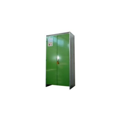 Safety cabinet for the plant protection product storage avoiding any risk of chemical, toxic and non inflammables products. Cabinet Solutions - phitobox available in two models with different capacities: Safety cabinet for the plant protection products storage build with a strong galvanised steel sheet frame, 12/10 mm thickness, dimensions h. 2000 x L. 1000 x P. mm. equipped with: Two glazed door with key locking on three points, fully integrated lock, powder varnished and resistant to washing and disinfection. 4 galvanised steel sheet shelves, adjustable in height, with removable hold-up tank. Natural ventilation grilles on the front and on the sides of the cabinet. Identification and signalling signwriting. Colour green RAL 6018.