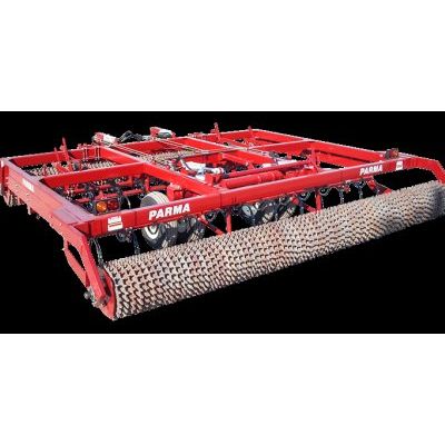 The Parma® Rollaharrow comes in various sizes ranging from 12ft to 24ft in a rigid frame. The 4-Bar units come standard with four rows of heavy duty S-Tines properly spaced to allow optimum tillage without trash buildup and plugging. Also among the standard features is a hydraulically controlled leveling bar to smooth and level the soil behind the S-Tines. The Parma original `wheel forward` axle design with 12-ply tires lifts the front end first to provide better balance for quick lifting and smoother operation in turnaround and transport. The `loose fit` style front and rear packer rollers are available in various sizes and cast steel ring composites. Also available are crowfoot rollers and welded pipe rollers all mounted on large 2 3/16` shafts and triple-lipped sealed bearings.
