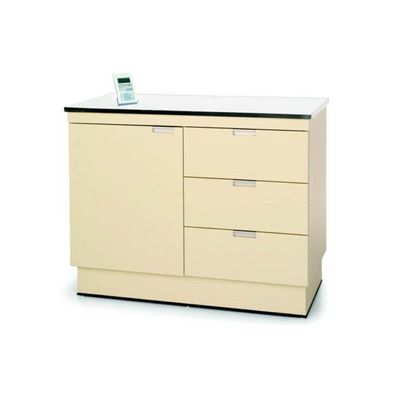 This multi-faceted VetLine Exam table is both a weigh and exam table. It has been designed with a full flush top and equipped with a Vet-Tech 2000 quality scale. This high quality scale has a 400 lb. capacity digital scale, metric conversion display, motion weight average function and positive overload stop. The cabinet is made of high quality plywood covered with pressure-treated laminate exterior. This cabinet has 3 full extension drawers and a spacious cabinet. This unit is 36" high.
