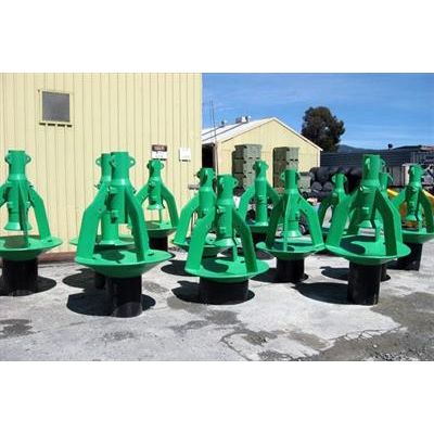 Floatation collars ranging from 250mm to 500mm diameter are made from virgin HDPE pipe. Our unique HDPE stanchions have no continuous seams or joints and are designed and rotomolded in our factories. A number of different styles of stanchions are available to suit individual sites, species and farmer requirements. These unique stanchions mean we can personalise pen design to include equal or differential flotation, net hooks, bird pole brackets, walkways and other extras to suit our customer’s needs. We can also supply steel stanchions, bird pole supports and mooring points as required.