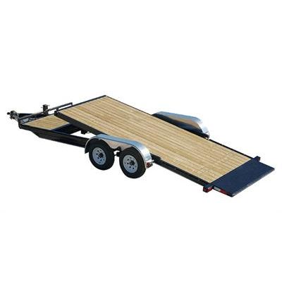Standard Features: 7,000 lb. G.V.W.R. 3,500 lb. x 2 G.A.W.R. Adjustable 2 5/16” Ball Bulldog Coupler. Safety Chains. 1 - Top Wind Drop-Leg Jack (8,000 lb.). 2 Dexter E-Z lube Axles, Idler & Brake (3,500 lb). 4 Leaf Double-eye Spring Suspension. 4 - 15” White Spoke Wheels. 4 - ST205/75R15 Radial Tires (1,820 lb). Stake Pockets & Rubrail. Electric Breakaway Kit w/ Charger.