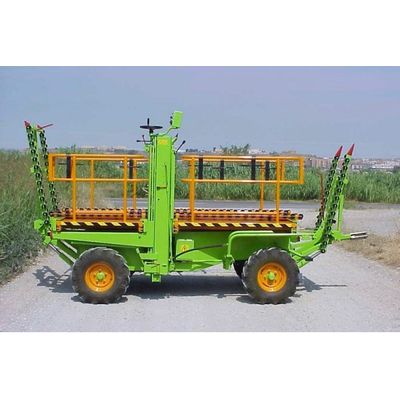Lifting platform with a maximum height 3.770 meters incorporates removable support cubes, expandable lateral baskets, and ideal for the harvest of fruit with box pallet. The machine has integrated pneumatic pruning equipment with an air tank of 25 liters and 7 shots of compressed air.