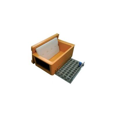 The transport box can contain 2 or 3 cassettes with each 40 milk sample bottles. A cooling element is placed under the lid.