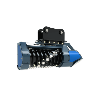 A rare combination of forestry-proven construction in a mini ex attachment. This unit is developed for light carriers in need of powerful mulching in compact spaces such as in town/city boundaries, making it conveniently towable in your daily driver. Featuring one-of-a-kind machined, interlocking, segmented arbor technology.