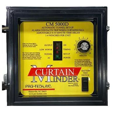 The CM 5000D is the first curtain emergency ventilation control for both tunnel and conventional poultry rearing houses and confinement buildings with curtains or fall out panels. A knob on the front of the Curtain-Minder controls the delay time for releasing the curtain winches. The delay is adjustable between zero and ten minutes. Zero or near zero allows the operator to test the systems and the curtain winching system quickly. Ten minutes may be practical for young poultry and livestock, and other sizes under some extreme weather conditions. The time in between zero and ten minutes is used to provide protection while ignoring local electrical problems. The adjustment also provides the operator the ability to match the transfer time on an automatic standby generator.