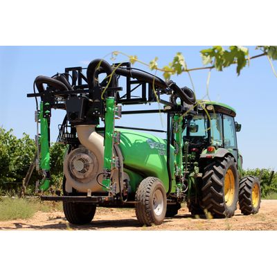 This sprayer generates an air volume of 135,000 m³/h (at 35º) with a power consumption starting from 95 HP. It features directional airflow control and turbulence generation to effectively and uniformly spray both the outer and inner areas of crops. The spray direction controllers of the air group are angled at 39º to reach the canopy of tall trees, and the inner cone generates turbulence that enhances coverage and internal wetting of the tree.Fruit Sprayers