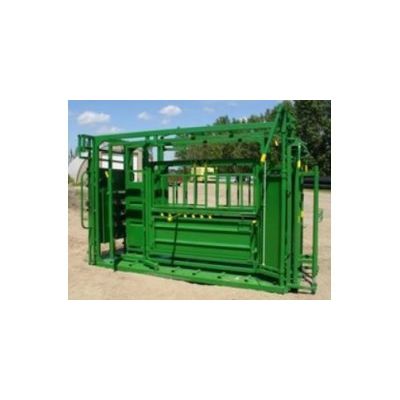 Deep ribbed checker plate floor in both squeeze and palpation area. Operate from either side by a single operator. Side opening doors to release cows from either side. Removable bottom panels to allow for easy access. Integral palpation cage with door on both sides. Palp doors move with squeeze to eliminate all corners that calves can turn in. Includes removable spring loaded headgate, automatic with dual controls. Parallel axis squeeze action to center animal, calm them and keep them from going down. Wide opening and removable side access gates for increased access to animals. The sliding rolling gate that operates from both sides, is made out of 1 tubing. Dual adjustable linkage for even pressure front and back.