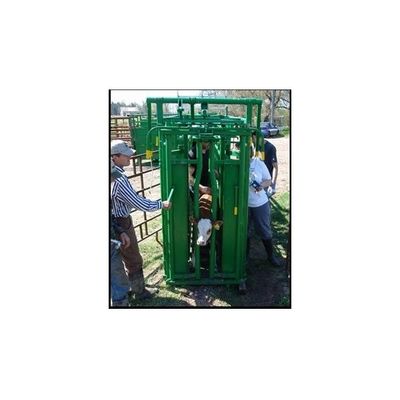 One piece unit for strength and durability. Quickly and easily setup For calving, nursing, examination or inoculation. Side panel easily swings out of the way for easy access. Independent bottom panel allows for nursing while maintaining animal in position. Curved designed to direct animal toward headgate easier.. Checker plate floor platform at headgate to prevent animal from moving pen.
