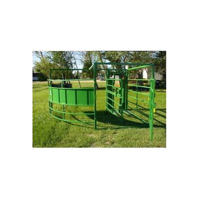 Quickly and easily setup for calving, nursing, examination or inoculation. Three way linkage allows for the shape and size of corral you need. Side panel flips to allow for nursing or caesarians. Removable spring loaded top bar permits administration of medication or diagnostic examination.