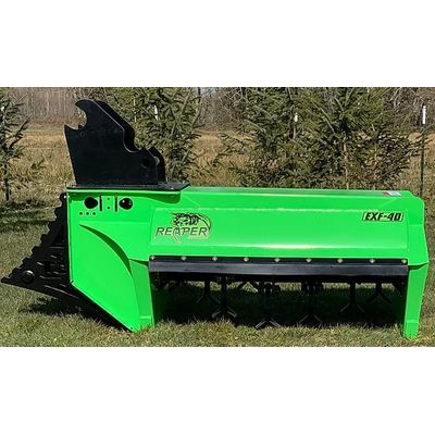 The Reaper Attachments EXF-40 Brush Cutter is specifically engineered for medium to heavy-duty compact excavators. It stands out due to its lightweight design compared to other flail mowers in the market, but without compromising on strength. This attachment is highly balanced, operating more quietly than most vehicles. This balance quality is demonstrated through an empty can test, highlighting its sensitivity to imbalance. The EXF-40 is optimized for efficiently cutting and mulching grass, small underbrush, shrubs, and small trees with its 2 lbs. blades. Additionally, it is versatile enough to function upside down, allowing operators to manage overhanging brush along roadways with ease. The EXF-40 is compatible with various models from manufacturers like CAT, John Deere, and Kubota, ensuring broad usability across different compact excavators. Safety and accurate installation are emphasized, with recommendations to consult specific manuals and use precise templates.