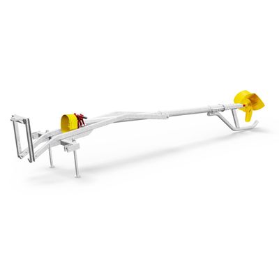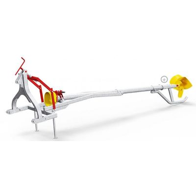 The mixer model Tiger can be used in small pit openings (from about ø 60cm) due to the cranked folding frame. Attachment to the draft links and the tractor clevis. The insertion and height adjustment of the mixer can be operated through the tractors hydraulics from the seat. There are no hoist chains and manual spindles necessary. The height adjustable clevis bow allows a regular bending of the normal cardan shaft and an adjustment to the different circumstances and tractor sizes. There is no restless up and down of the slurry mixer during stirring up because of the twisting in the tractor clevis. The folding PTO mixer Tiger is available from 3,60m to 6,2m length (interim lengths are available on request).