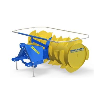There are 6 different width of the roller from 1,73m to 2,70m available (two standard width, the other widths with extensions). The diameter of the roller is 98 cm, there are 24 /32 spreading paddles welded on.You can chose between a rigid or hydraulically swivelling machine. A lateral limit of throwing (rigid), an illumination unit and oil motor drive are available as accessories.