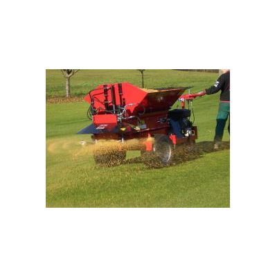The new top dresser is the first ever walk-in-front disc spreader on the market. It contains a 18 hp engine and spreads top dressing material up to 40 feet (12 meters) wide. Now you can top-dress with a pedestrian unit much like is done with walking aerifiers. The DS550 is hydrostatic driven, with great traction and a very light footprint.