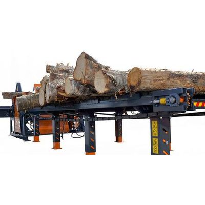 The conveyor receives the logs selected by the Autosorter, or by the manual loading table. It drives them toward the Autochopper firewood processor. The drive works in two ways: toward the firewood processor for its supply, or in inverted way to eject a log (handled from the control panel of the Autochopper). Designed for an intensive use. Its roller are cone-shaped and toothed, activated by a chain driven with its own hydraulic motor, driving logs right to the saw reliably, no matter what diameter it is.