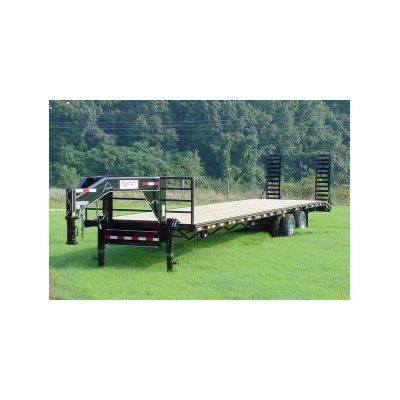 12` I beam frames. 3` channel cross members. 8` wide. Treated Pine Flooring. Drop foot jack 12,000 lbs.. Adjustable coupler - 2 5/16. 6` slide in ramps or fold-up ramps. Electric brakes all wheels. 4` or 5` dove tail. Tool box between neck. Standard pockets on 24` centers with rub rail. Breakaway kit with charger. ICC approved lights. Reflector tape. Painted with Dupont primer & Dupont Imron Paint. Overneck trailers 16` to 40`. Tag-a-long trailers 16` to 32`. Seal beam lights. Safety chains.