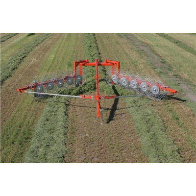 Sandard rakes may be customised by adding the following options: Rear wheel steering. Dual wheeled back-end. Hydraulic hand pump. Splitter assembly 2 reels, 4 reels. Dual castors on raking arms. Heavy duty rear knuckles & trunnions.