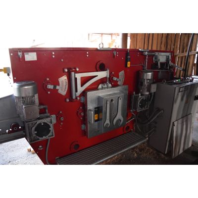 Increase your output with the CS 600! High resaw performance with state of the art circular saw technology! This innovative design consists of two 15 mm thick, laser-cut and machined steel side members between which the entire machine is assembled. The chain and V-belt drives are mounted externally. The speed of the two separately driven feed units with profiled feed rollers is adjustable via a frequency converter. The intake height is hydraulically adjusted to the wood. Large opening to the tempered saw shaft for easy blade replacement. The saw shaft is supported in only two places and is therefore very precise and quiet. Central lubrication!