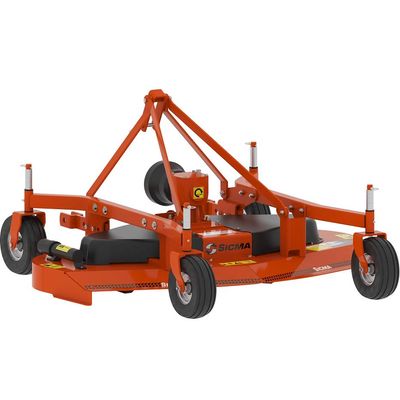 Mower with single-speed front attachment and rear discharge. For tractors with power ratings from 15 to 60 HP, available in four different sizes from 1200 to 2100 mm, it is ideal for the cutting of grass with a height of 10 to 110 mm. It can be fitted with optional mulching blades.
