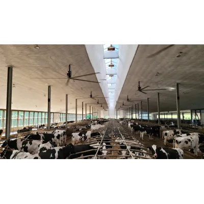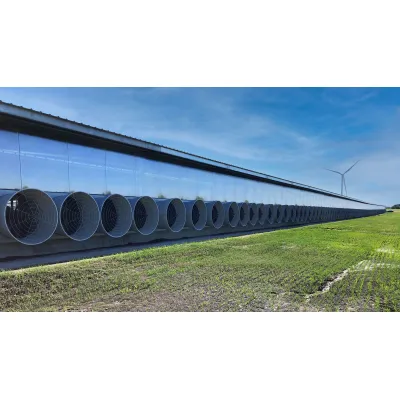 The Boreal Flow 55'' recirculation fan is designed to deliver high efficiency with minimal energy consumption, addressing the ventilation needs of dairy cattle. The fan features an EC motor coupled with a direct-driven impeller, ensuring it remains energy-efficient and low-maintenance over its operational life. By optimizing indoor climate conditions, the Boreal Flow fan significantly contributes to maintaining healthy and productive livestock, especially during warmer weather conditions where adequate air circulation is paramount in preventing heat stress. The intelligent design of this fan, along with its noncorrosive materials, enhances durability and reliability. Performance tests indicate that it outperforms equivalent competitor models by providing 40% more airflow and consuming 32% less energy under similar conditions. These features make the Boreal Flow fan a standout solution in agricultural ventilation, ensuring optimal performance and well-being for dairy cattle.Exhaust Fans