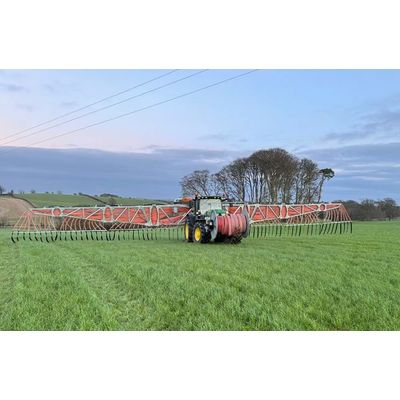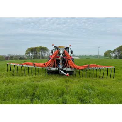 The Slurryquip Orthrus 24m Umbilical Dribble Bar is engineered for precision and efficiency. The extensive 24m working width maximizes operational efficiency by covering large areas in a single pass. The twin Slurryquip Xiphos Macerators, featuring Hardox® serrated blades, provide robust cutting performance, ensuring thorough slurry breakdown and minimal blockages.