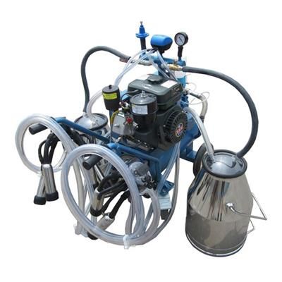 The portable milking machines are mainly constituted by: Milking system: pulsator, claw, stainless steel teat cups, milking liners and tubes, stainless steel milk bucket etc. Vacuum system: vacuum pump (blade), vacuum tank, auto-stop vacuum valve, muffler, vacuum gauge, vacuum ball-valve, diesel motor, etc. Mobile frame (structure): portable trolley with wheels.