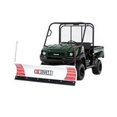 Two BLIZZARD straight-blade snow plows are available with mounts that fit a variety of utility vehicles. The custom-fit mount package easily installs onto the existing utility vehicle frame and can accept either the 680LT or 720LT straight-blade snow plow.