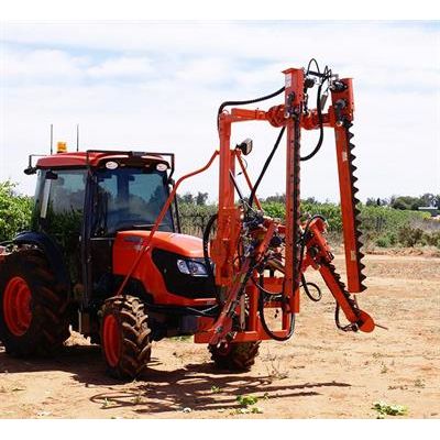 The Mast Mounted Twin Row Green Trimmer topping machine allows for the summer trimming/pruning of vines.