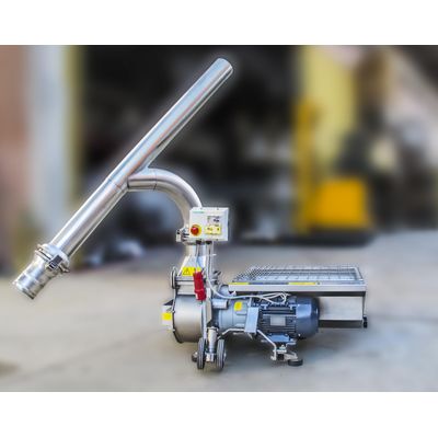 Ideal for marc or for not particularly fluid products, rotor D. 300x150, it is also suitable for the transfer of whole and de-stemmed grapes, with adequate pipes reaching large heads of 10 m. in height or 50. m. in distance. Reclinable stainless steel hopper to obtain smaller height dimensions, it is complete with stainless steel auger protection grid. Stainless steel openable cone with hinges, for inspection of the entire internal pump, stainless steel ball or garolla joint Ø 100 -120.