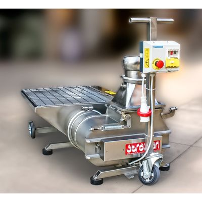 For the transfer of grapes and marcs and semi-solid products. Ideal for whole and de-stemmed grapes, very wide passages 300x200, hourly production of 250 ql/hour with a low number of revolutions. It acts by pressure and not by centrifugal force, it ensures the best possible treatment of the pumped product avoiding breaking of the stalks and crushing of the skins and grape pips.