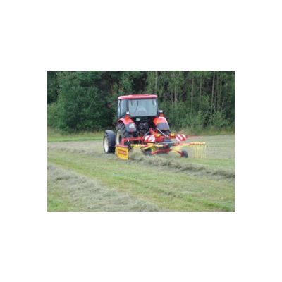 SP4 - 152 is suitable for smaller companies, since for the price of one machine they can obtain two machines.Working span of tedding is 3,5 m and of raking 3,2 m.To convert from a tedder to a delivery rake, only the working fingers need to be turned on the rotor and the line walls readjusted. In the stationary position, the fingers stick out; for meshing they just tip out by centrifugal force after the rotor begins rotating.