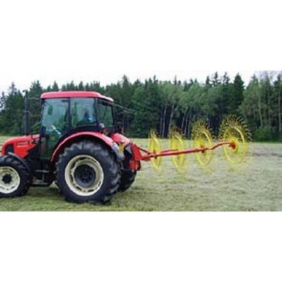 Machine SP4 - 205 is the simplest model produced by Strojírny Rožmitál.These are the designated radial machines that can also be attached to the three point hitch of a tractor.Maximum working span of the SP4 - 205 is 3,1/3,4 m when tedding/raking.These machines tedd and rake by adjusting their radial wheels aslant according to the direction of the movement roll on the ground. To convert their activity, the frame of the machine can be turned through 180° by a simple and speedy operation. By turning of the frame the machine changes either into a tedder or a delivery rakes. Due to their simple construction, undemanding maintenance and low price, the radial tedders and delivery rakes belong amongst the best selling products.