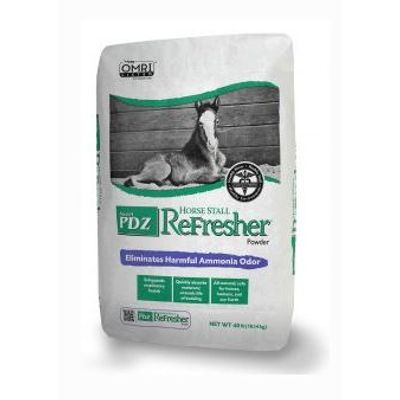 Classic powder PDZ, introduced in 1983, has a small granule size that is easy to spread on problem areas, and absorbs ammonia quickly and comprehensively. Sweet PDZ Horse Stall Refresher Powder is ideal for discrete or more challenging problem areas in the stall.