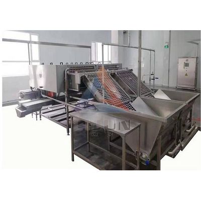LJ-10000S egg peeling machine is made of SUS304 food-grade stainless steel, which is safe, hygienic and stable in quality. Easy maintenance, low breakage rate of eggs, suitable for boiled eggs, brine eggs and other egg processing enterprises production needs. Capacity :10000 eggs/h.