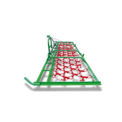 Our chain harrow is designed for meadows and pasture care and for harrowing of arable fi elds after winter.It can also be used in soil bed preparation prior to sowing.It is effec- tive in molehill levelling on meadows. The drag is built from a steel frame and a net of toothed,cast iron working elements inter connected by means of steel rings. Special hinges,ensuring transport stability,connect the drag parts. The drag nets are reversible with different working elements on either side.