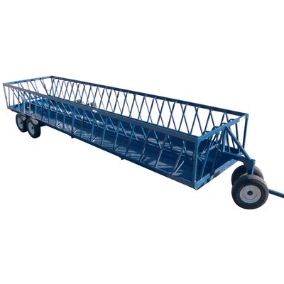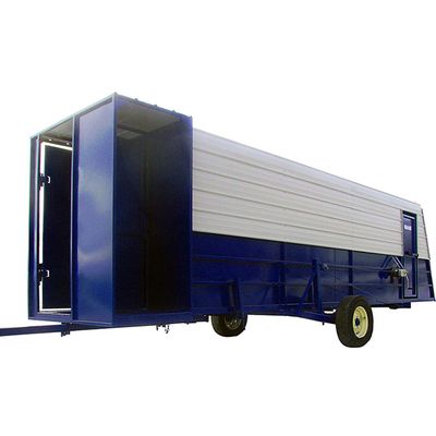 16 ft, 24 ft, 28 ft, models available in straight and 3-way loadout. Loading height up to 10ft. Adjustable support legs. 2 adjustable filler panels at each end to close all gaps between building and trucks. Tongue telescopes out of the way under the unit or hinged down on the 3-way unit to the left or right. Side door entryway for the operator. Divided center walkway – one for the livestock and one for the operator. 69″ overall width, 33″ livestock width, 18″ operators walkway width, 16″ rims & tires, 6 bolt wheels. Safety chain.