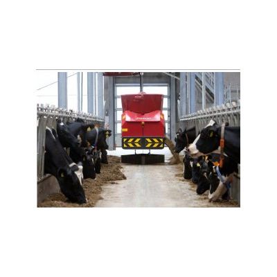 The Triomatic T10 is a standalone feeding robot. The robot can control tower silos or other storage units and can be implemented into existing systems. The Triomatic T10 mixer feeder robot has two vertical mixing augers, a transverse conveyor capable of discharging to both the left and right, and a volume of 3 m3. The feeding robot in combination with a stationary feed mixer, with a feed kitchen or storage bunkers can be used as a full automated feeding system.