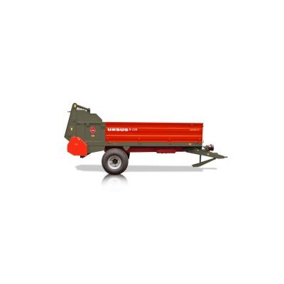 The N-218 and N-228 spreaders are intended to spreading manure, peat and compost. After removing the adapter and installing the rear side they can also be used to transport agricultural produce. They cooperate with tractors equipped with lower transport hitch. They are produced in version with horizontal two-drum adapter. The N-218 spreader is also available with vertical four-drum adapter. This version is marked `P`. Floor conveyor drive of both machines is mechanical and in case of N-218 it can also be hydraulic. Spreaders N-218 and N-228 are fully adapted to the transport on public roads - they have pneumatic braking and lighting system.