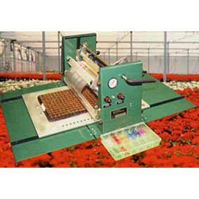 The Tree Popper eliminates the difficult and time-consuming chore of pulling seedlings one at a time by hand. No more broken stems or damaged roots. Powered by compressed air, the Tree Popper dislodges a full tray of seedlings in seconds. The Tree Popper is available for any size tray, molded plastic, or styro block. Easily operated and virtually maintenance free, the Tree Popper will save time and money season after season.