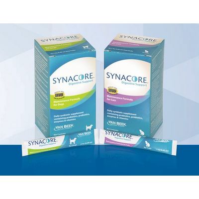 Synacore is a uniquely formulated digestive support supplement containing a healthy amount of enzymes, probiotics, prebiotics and vitamins. These ingredients work together synergistically to assist digestion and support the growth of natural microflora in a pet`s GI tract for overall health.