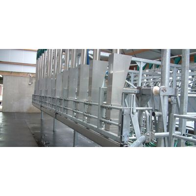 This rapid exit milking parlour is characterised by its simple, but very robust self-supporting construction. Due to its pneumatic controls, it is an economically attractive milking parlour. Despite its low overall height, this milking parlour has a more than sufficient passage height. Thanks to a modular construction system, it can be installed quickly in both new or renovated buildings. The cows enter this milking parlour one after the other. As soon as cow number one has placed itself in the first position, a space opens up, so that cow number two can place itself in the second one, etc. The short walking lines contribute to a high quick-change capacity.