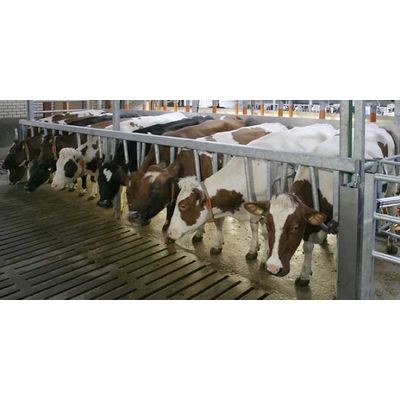 The Rapid Exit Compact cattle milking parlour features a simple, robust, self-supporting construction with low, compact frame dimensions. Its compact size make the system perfectly suited for installation in new constructions or during renovations. The quality design, constructed from thick-walled steel grades, can be supplied with between 8 and 2x12 stalls. The fencing runs vertically upwards over maintenance-free plastic rollers, ensuring that the breast barrier does not swing out. Your cattle can exit the stall peacefully under the breast barrier, which has a walk-through height of 1650 mm. The breast barrier can be lowered again when your cattle have taken just a few steps forwards, ensuring a rapid changeover.
