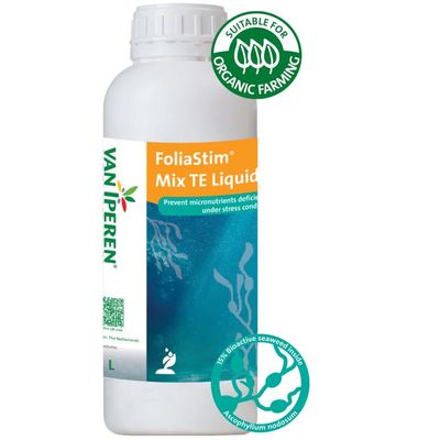 Van Iperen FoliaStim® Mix TE Liquid is a pure and highly concentrated liquid Micronutrient fertilizer, formulated with 15% seaweed, mineral nutrients and EDTA chelates. Our product is a stable solution and is recommended at different phenological stages. The synergy between our seaweed extract and the chelated micronutrients in our formula improves plant vitality and production. Ideal for preventing micronutrient deficiencies especially during intensive growth and production phases. The presence of high quality seaweed supports the uptake and the transportation of nutrients and increases resistance against abiotic stress.