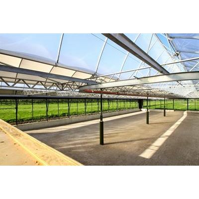 The roof and the side walls may be covered with single isolated plates, treated with or without anti-fogging. Panels available in all RAL colors, Sliding doors and/or sectional gates are possible. Finishing possible with concrete panels, (rollable) nets, ...