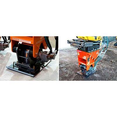 Quick change Hoe Pack / Tamper attachment for Skid Steers or Small Excavators. Another “easy to install” labor saving attachment.