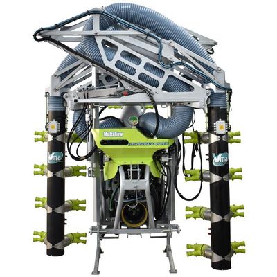 Low volume sprayer with anti-drift panels for recovery function. The VMA stainless-steel micro-perforated panels allow air to exit, and so therefore for excess liquids to be treated, collected, filtered and diverted to the main tank, helping to minimise costs. This new system created by VMA - with the aid of a centrifugal high-power modifiable ventilator - allows users to choose the correct volumes of air for each mass of foiliage. This in turn means that the substance can penetrate deep into the deepest mass of foiliage, so maximising the coverage of the foiliage wall. The result is a reduction of the drift effect, and so greater respect for the environment.
