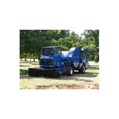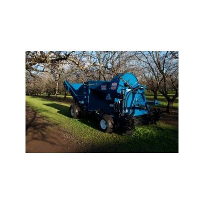 The Weiss McNair 9800 California Special nut harvester is designed to help California meet all government clean air and water regulations. The long intermediate dirt chain allows dirt to sift through the chain before the suction fan vacuums debris from the crop for less dust and a cleaner harvest. The vacuum system provides for faster, cleaner loads. The 9800 has fewer parts, while gear boxes, drive sprockets, extension shafts, and roller chains have been eliminated to assure minimal downtime. Extra large rear balloon tires provide maximum floatation for reduced compaction.